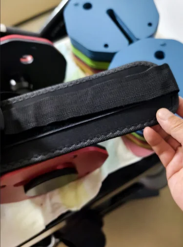 - Thread the side straps/loops through or around your chosen weights (dumbbells/kettlebells/plates) and secure them.