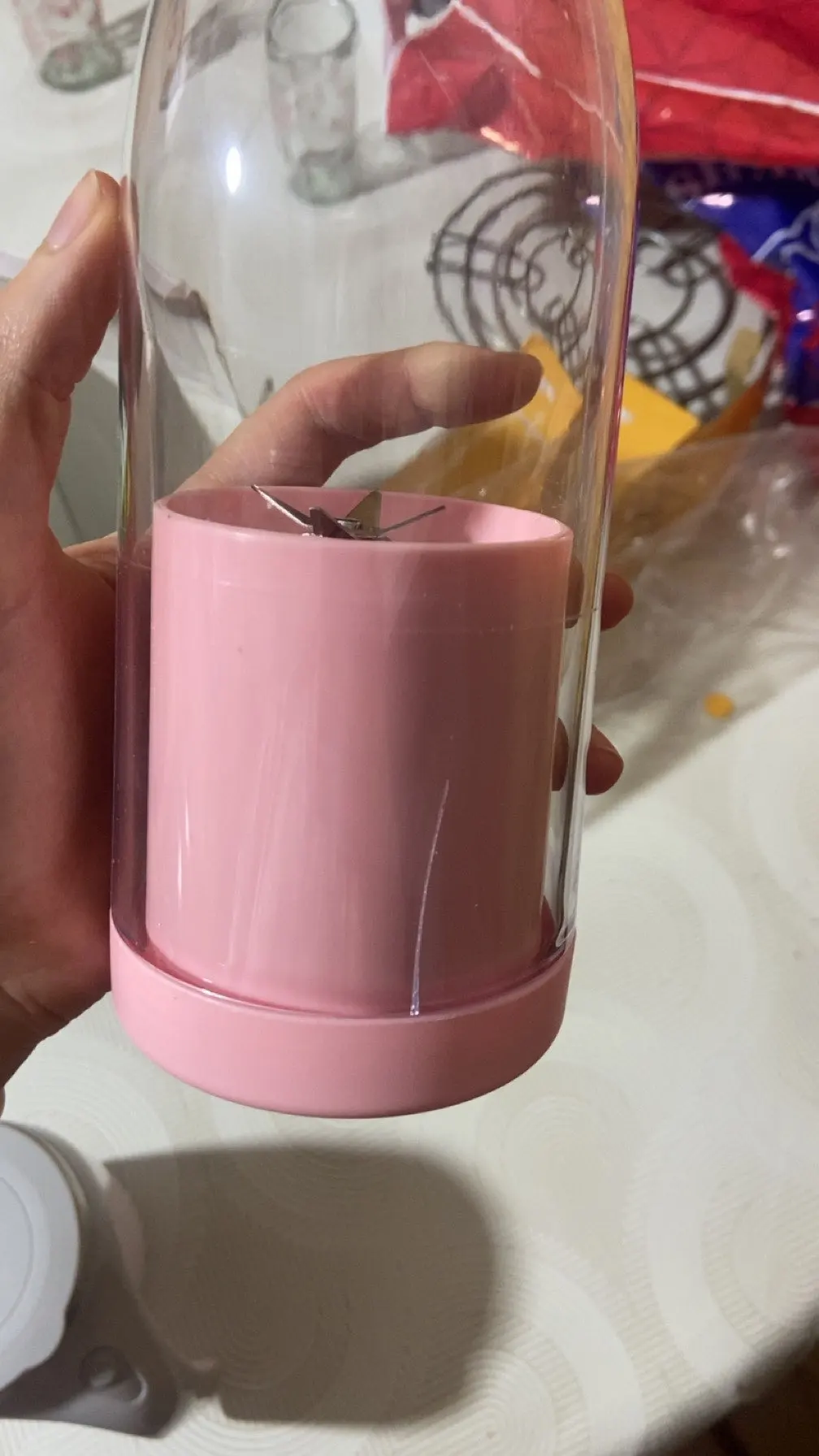 Materials: BPA-free plastic jar + stainless steel blades.
