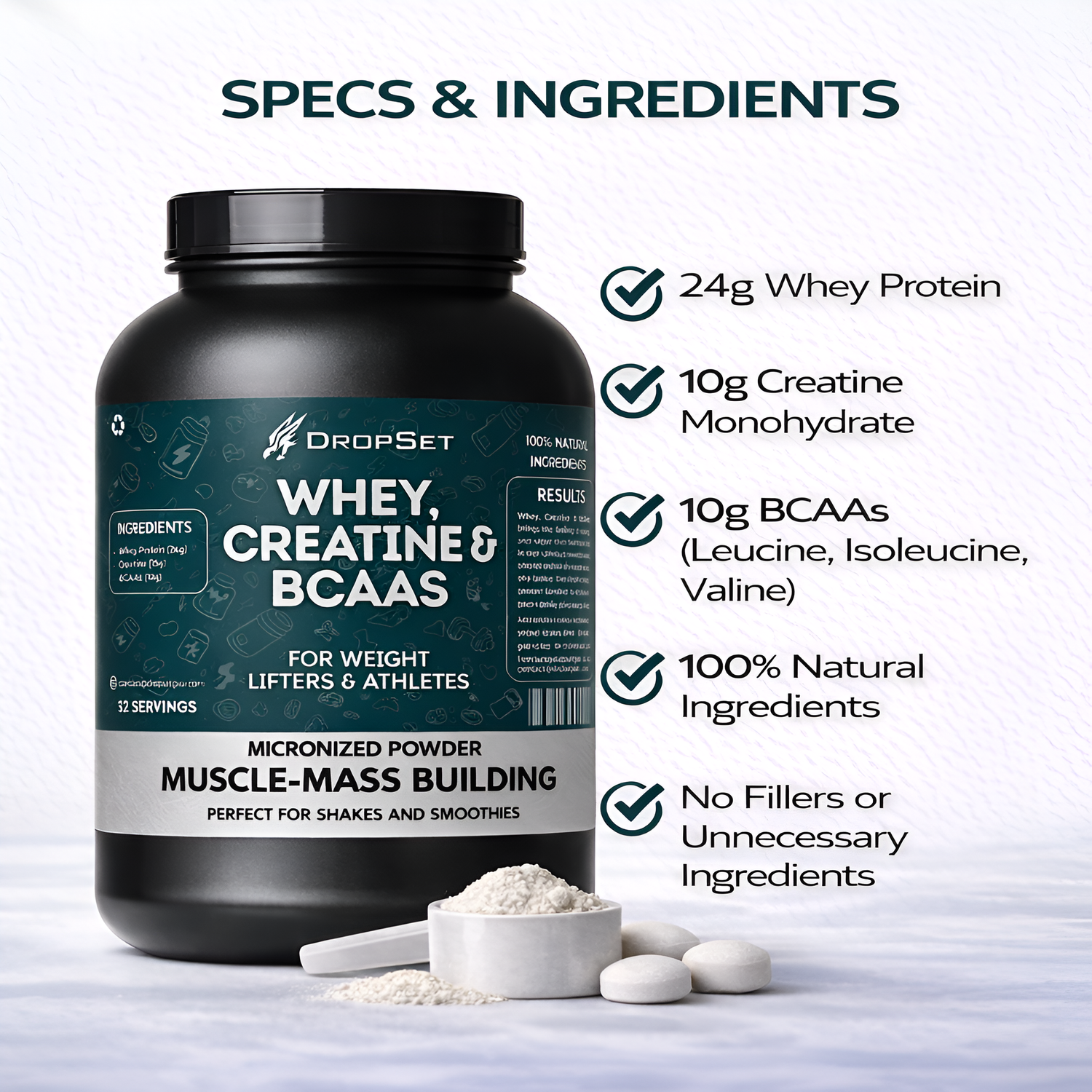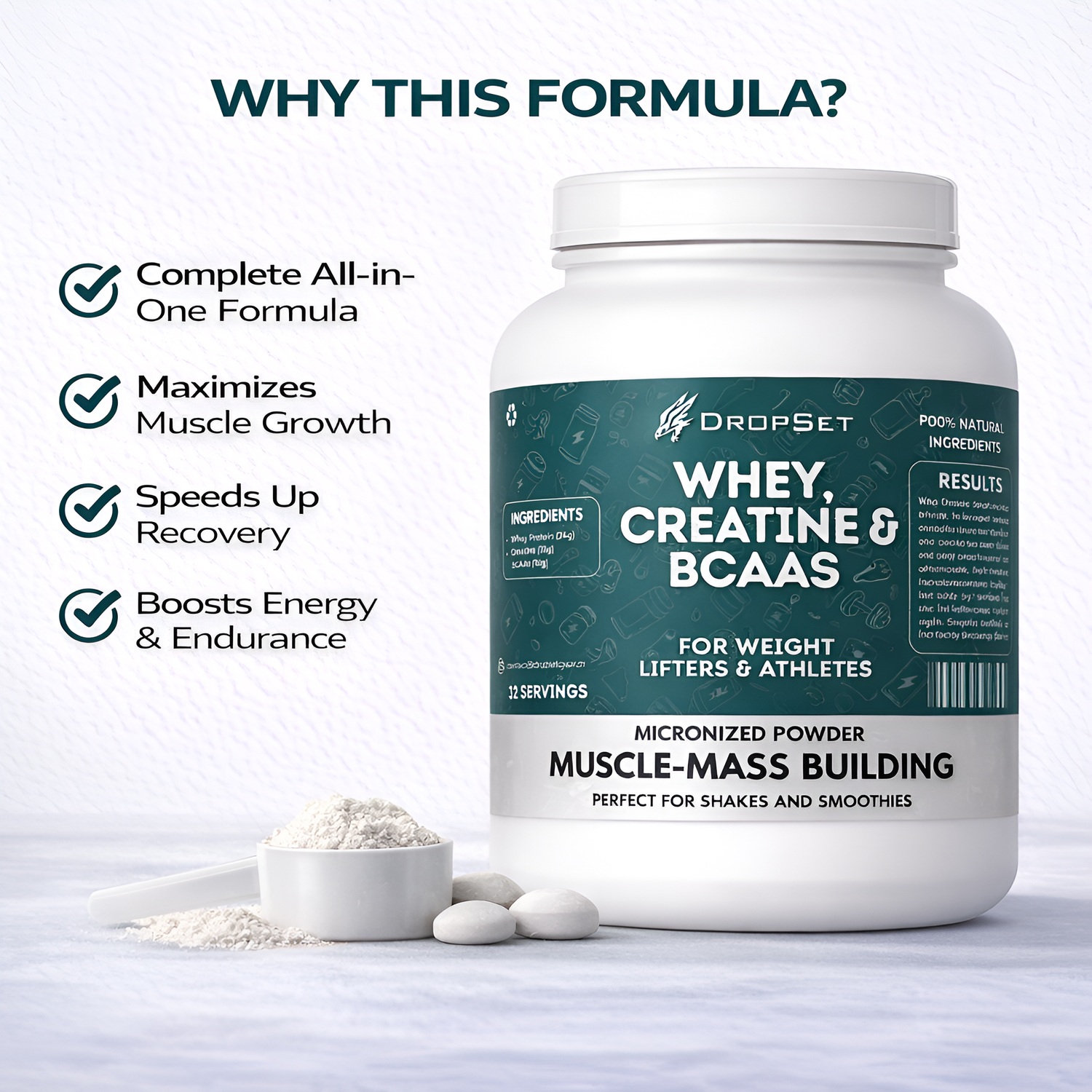 It’s an all-in-one performance blend that combines high-quality whey protein for muscle growth, creatine for strength and power, and BCAAs to support muscle recovery — all in a single scoop.